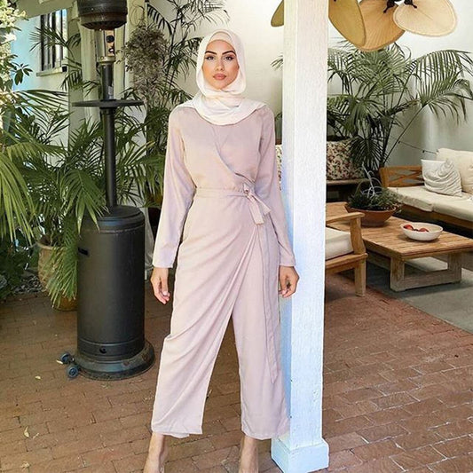 Muslim Dresses Robe Long Sleeve Hijab Vestidos Fashion jilbab Isamic Clothing 2 piece