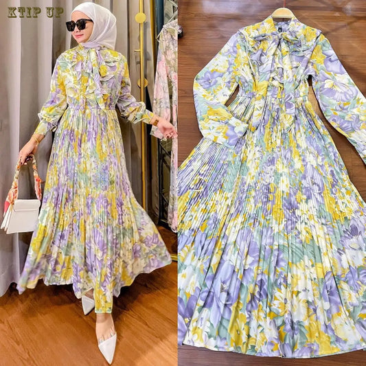 Abaya Ruffles Fashion Full Sleeve Casual New Ladies Moroccan Long Maxi Dresses
